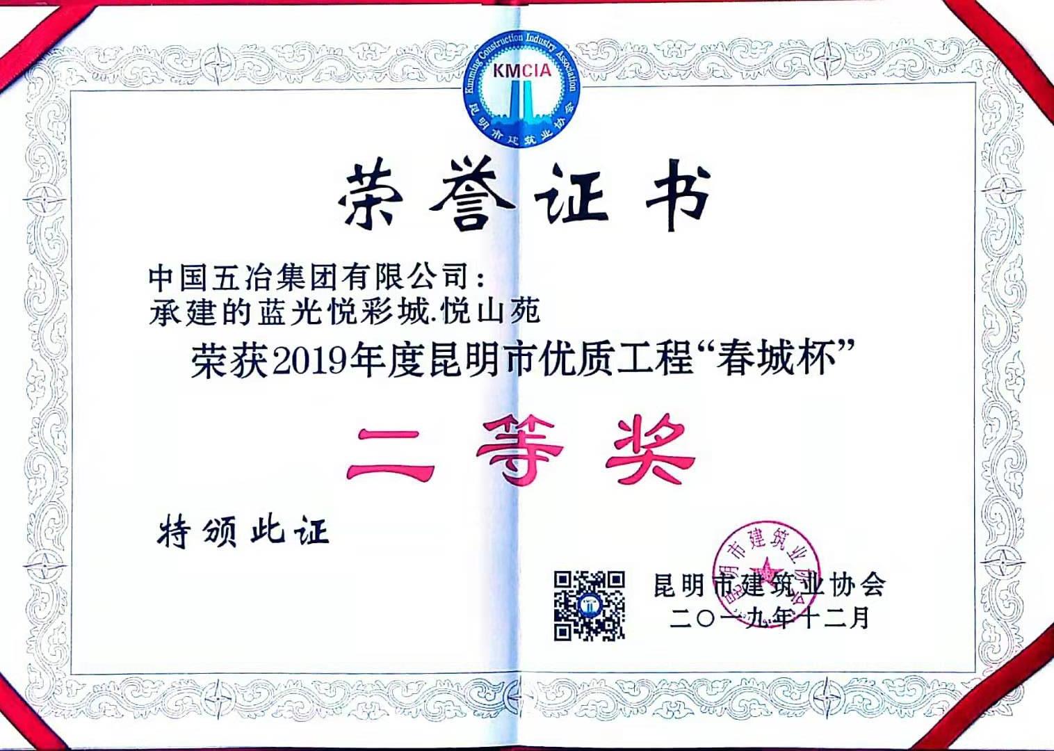 蓝光悦彩城.悦山苑—2019年度昆明市优质工程春城杯