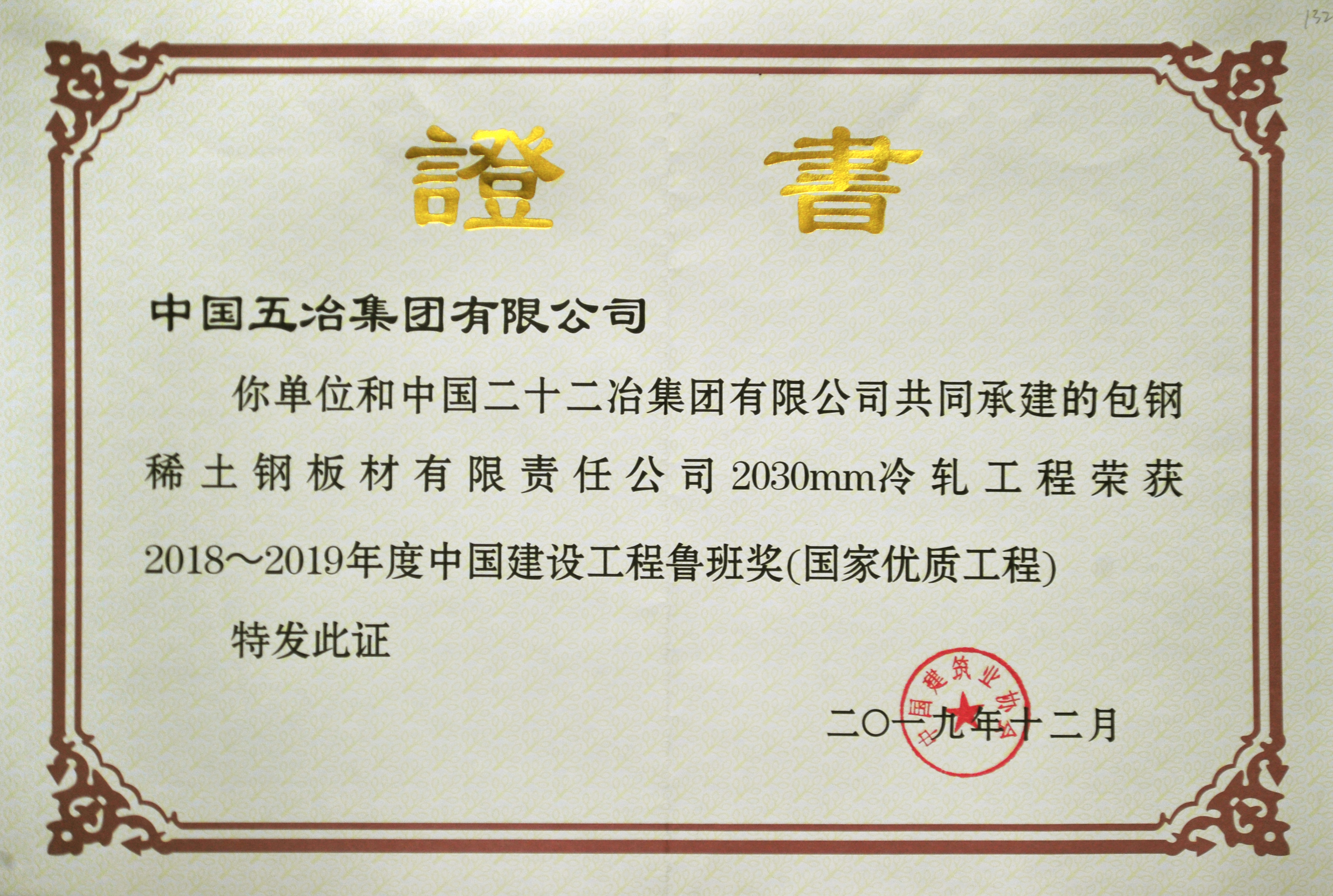 包钢稀土钢板材有限责任公司2030mm冷轧工程——2019年度鲁班奖