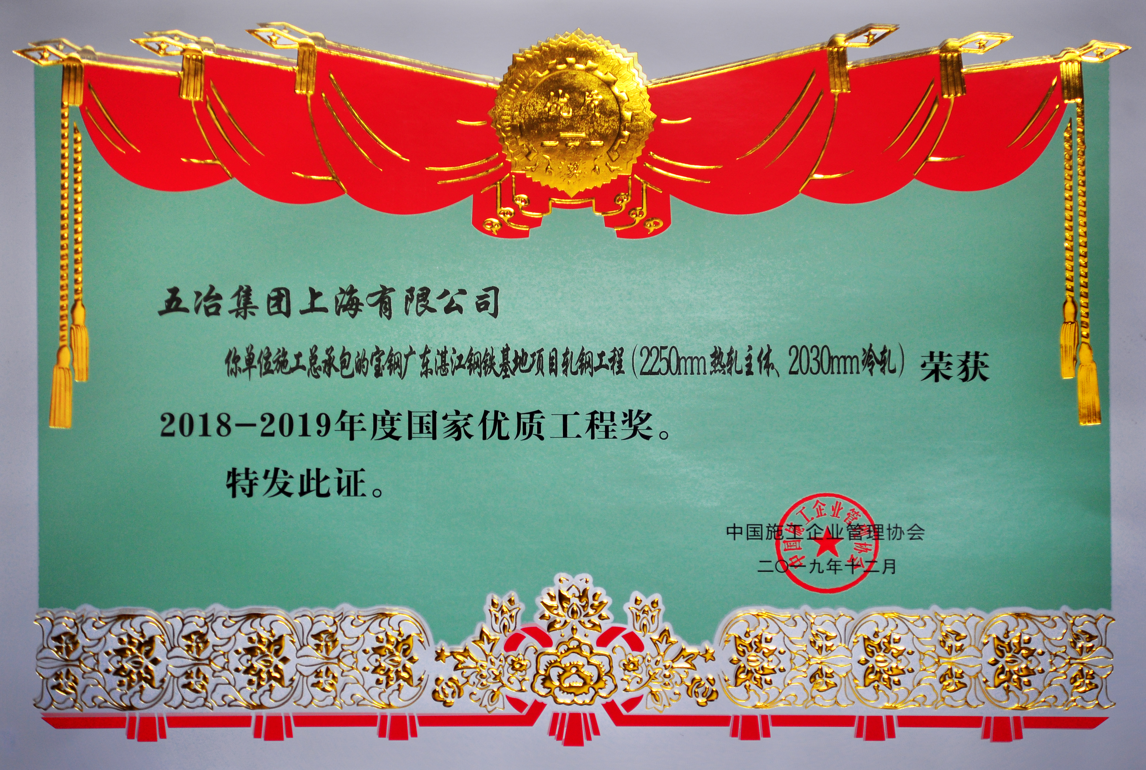 广东湛江钢铁基地项目——2019年度国家优质工程奖金奖