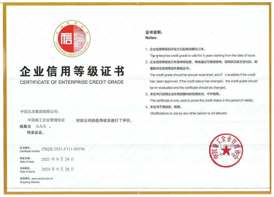 全国施工企业AAA信用等级