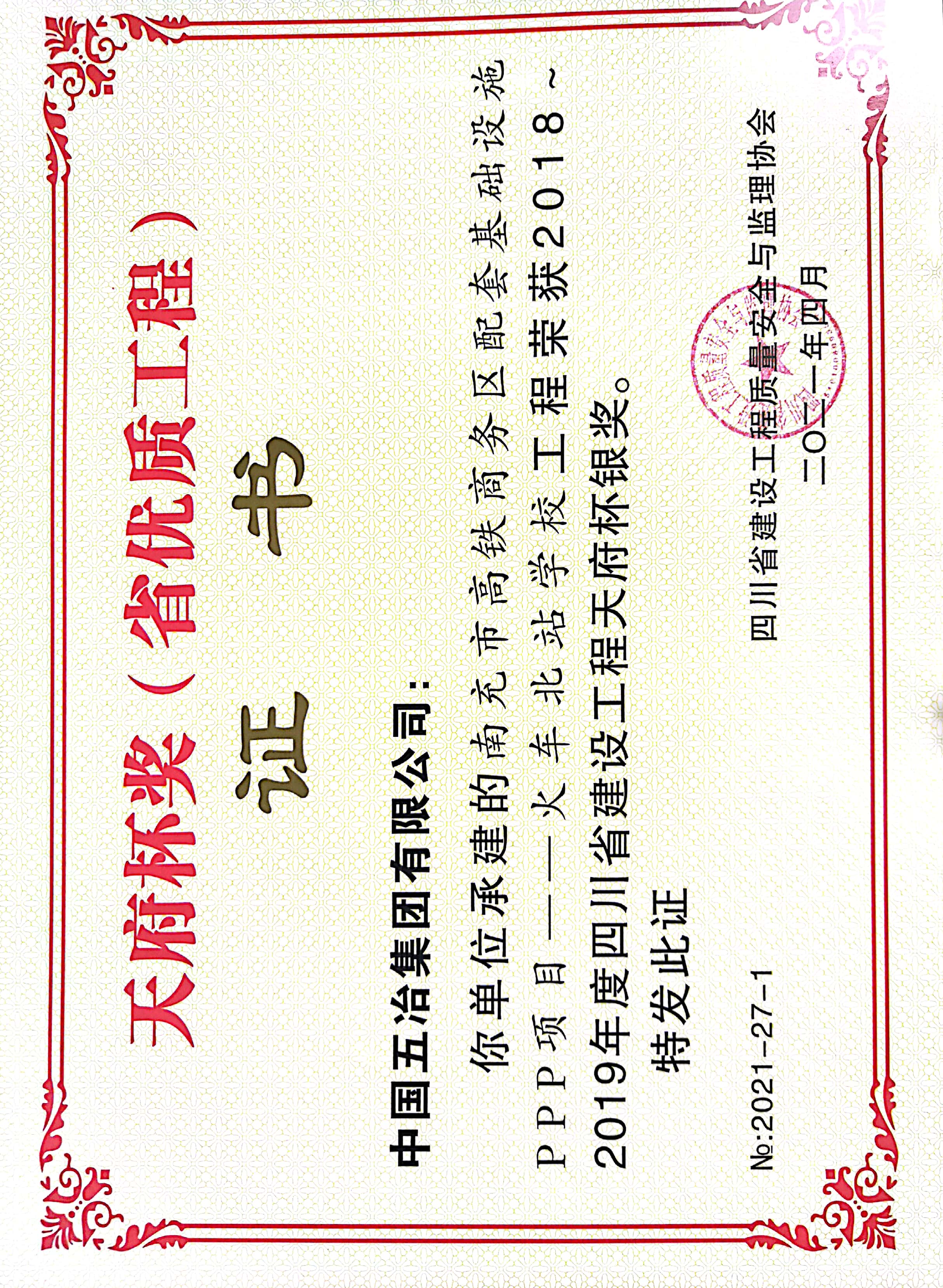 南充市高铁商务区配套基础设施PPP项目火车北站学校-2018~2019年度四川省建设工程天府杯银奖